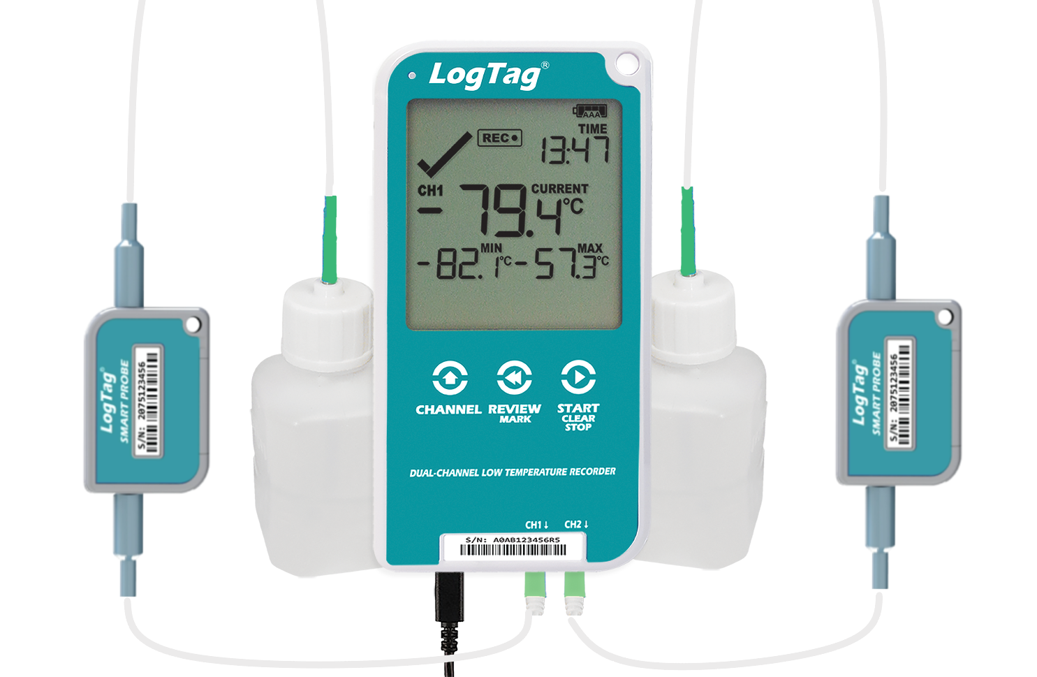 Includes: UTRED30-16 Datalogger, 2 x CP10S-15 External Probe, 2 x Buffer Bottle, Wall mount Bracket, NIST Calibration Certificate.